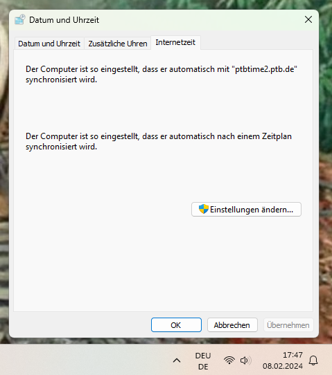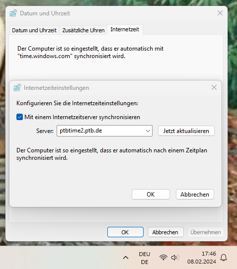 eingeben bei Server ptbtime2.ptb.de