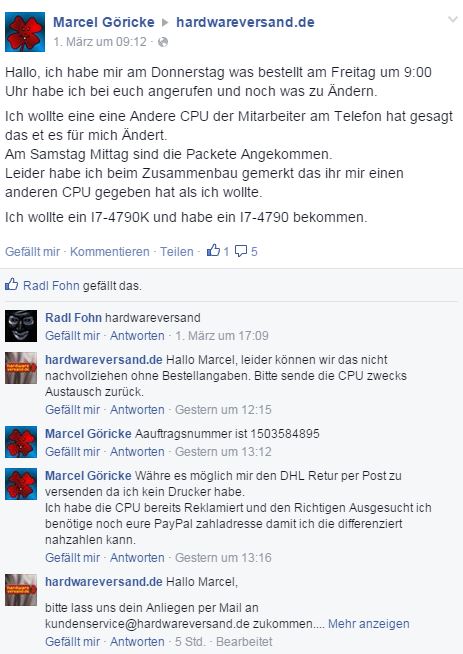 leider Reagier der Händler Weder Auf Facebock oder E-mails an Telefon gehen die auch nicht dran