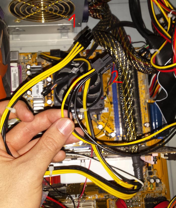 Der Stromstecker, der zur CPU führt, hat auch einen 6 Pin Stecker, allerdings hat dieser korrekterweise 6 Kabel (auf dem Bild Kabel 1, zusammen gesleeved mit dem 4 Pin Stecker für die CPU). Kann es sein, dass ich all die Jahre die GPU mit zu wenig Strom betreiben hab? Immerhin ist es schon echt lange her, dass ich den PC zusammengebaut hab, und danach hab ich nicht mehr reingeschaut...
