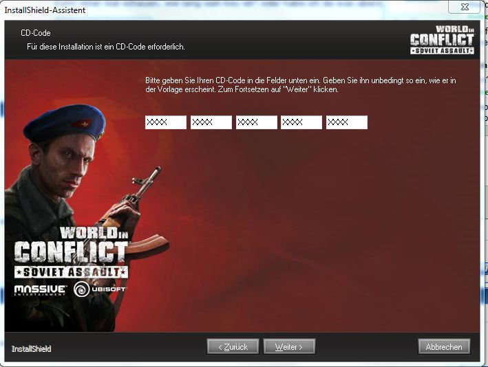 ich habe bei Amazon.uk World in Conflict Complete Edition erworben. Jetzt soll ich den key für sowiet assault eingeben. leider sieht der key so aus: