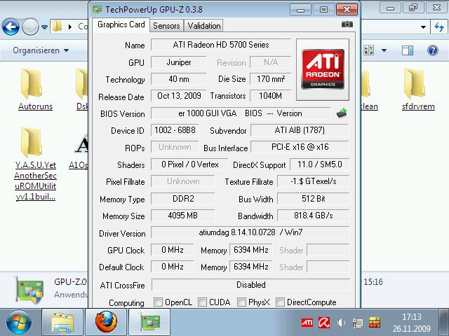 Ich hab eine Powercolor HD 5770 512 MB.Da sie ja einige Fehler hat hab ich mir ein Bios file für die Grafikkarte rausgesucht und drauf gemacht.mit dem Ergebnis das ich nur noch einen schwarzen Bildschirm hab.Was muss ich jetzt machen das es wieder geht.Hab zur zeit eine alte PCI Karte drin.Wo bekomme ich das richtige Biosfile her und ein Programm welches unter Windows läuft zu flashen.Ich danke Euch schon jetzt.