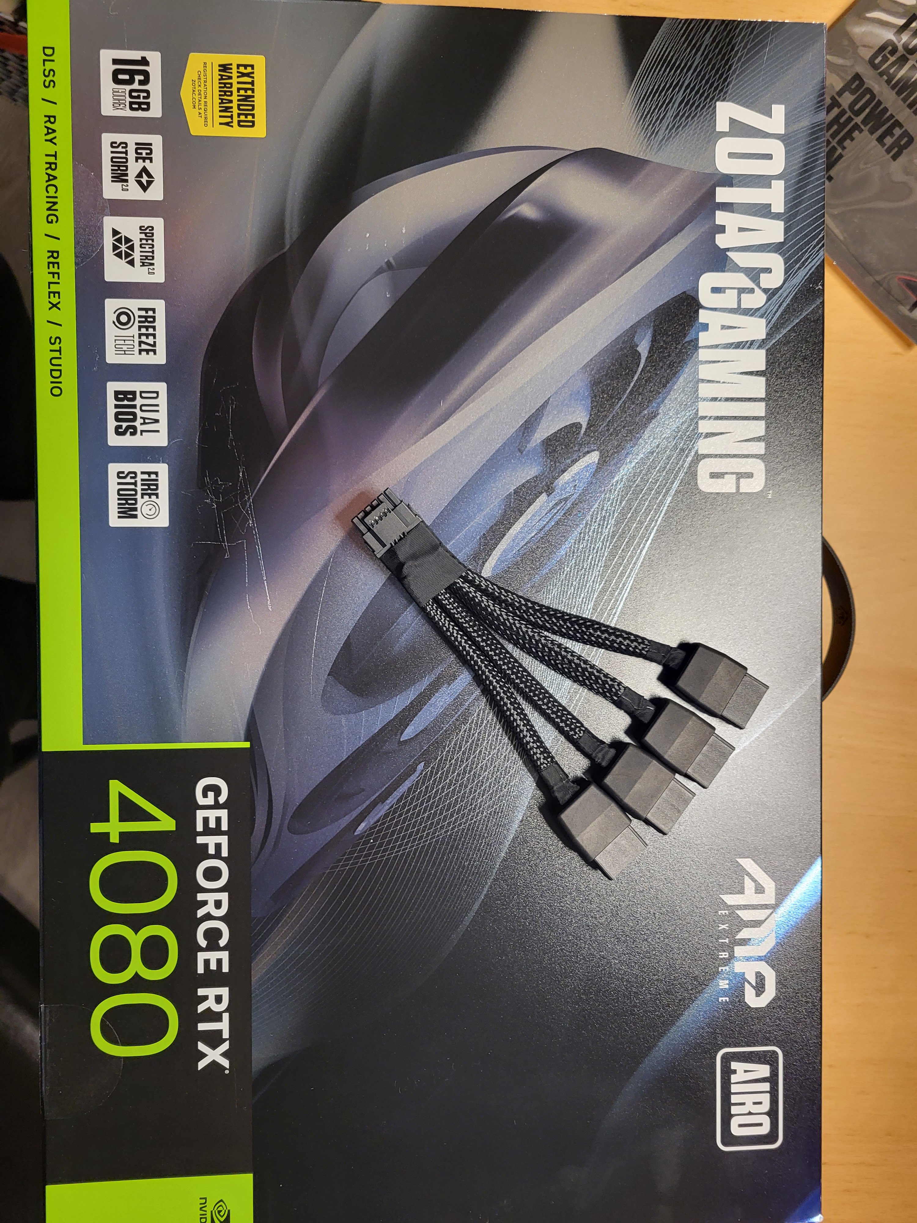 Der Zotac 4080 Airo liegt ein 12VHPWR Adapter mit 4* 8Pin bei (siehe Bild) wobei laut diversen Tests/Reviews/Unboxing hier normal ein 3* 8Pin Adapter beiliegt und benötigt wird.