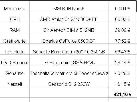 Was könnte man ändern, vor allem bei dem Gehäuse könnte man noch etwas sparen, aber kein Ahnung was billig und einigermaßen stabil ist ^^.