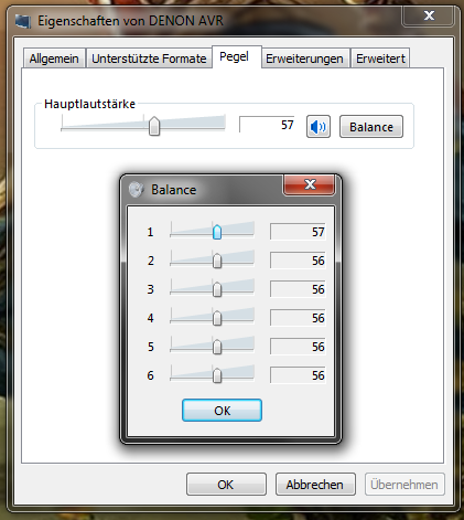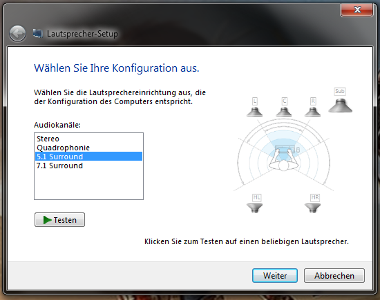 In allen Fällen empfehle ich noch eine Überprüfung der Lautstärke der einzelnen Kanäle (entweder in der Software der Soundkarte, oder dem Konfigurationsmenü des Receivers) um ein ausgeglichenes Klangbild zu erzielen. Auch wenn das ein wenig Arbeit ist, so hat das doch einen (imho grossen) positiven Einfluss auf die Klangqualität.
