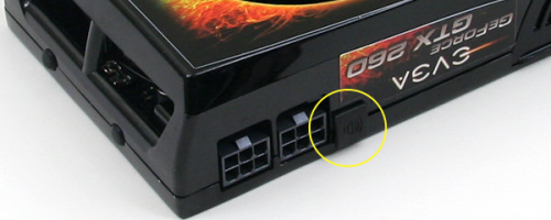 Der gelbe Kreis markiert den SPDIF-Anschluss bei einer Geforce 260.