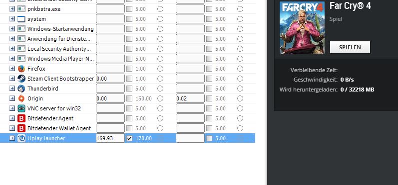 gestern habe ich mir einen FC4 Key gekauft und diesen erfolgreich in Uplay aktiviert. Auch das Herunterladen funktionierte bei den ersten ~500MB, doch danach tat sich nichts mehr bis jetzt. Das komische ist, dass Uplay irgendwas gedownloaded und das scheinbar wieder verworfen hat. Interessant ist auch, dass seitdem kein kB mehr geladen wurde und Splinter Cell bspw. einwandfrei downloaded.