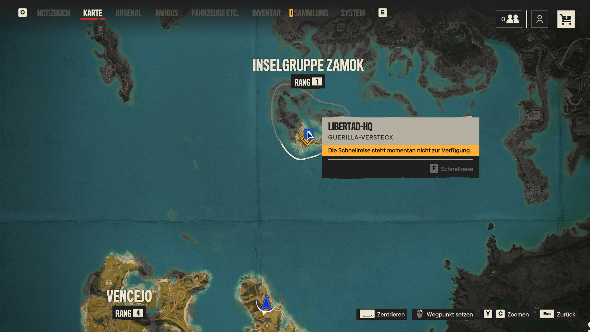 Seit dem kann ich aber nicht mehr als Schnellreise zum Libertad-HQ und die Story nicht fortführen.