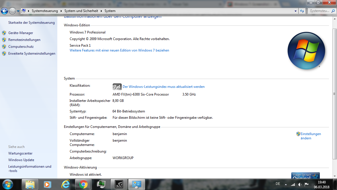 Der Prozessor der in Ihrem Computer zur Zeit verbaut ist, hat 3 physische Kerne mit jeweils 2 logischen Kernen.( Daher sollten Ihnen im Taskmanager auch die 6 Kerne angezeigt werden.)