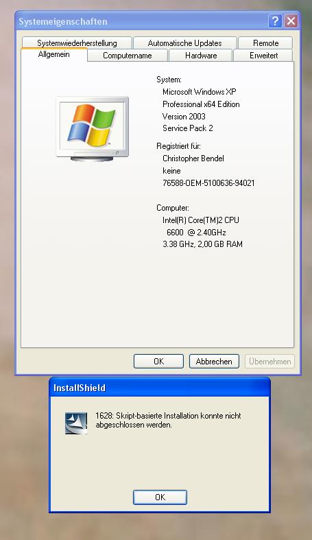 Das wäre der erste Link: Installshild 1628: Skript basierende Installation konnte nicht abgeschlossen werden