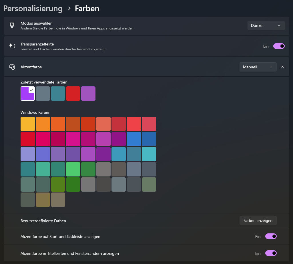 ich bin direkt von Windows 7 auf Windows 11 "umgezogen". Bisher war der Normalfall, dass Fenster im Vordergrund zumindest in der Titelleiste eine andere Farbe hatten. Bei vielen Fenstern hat man so sofort gesehen, welches das aktive ist.