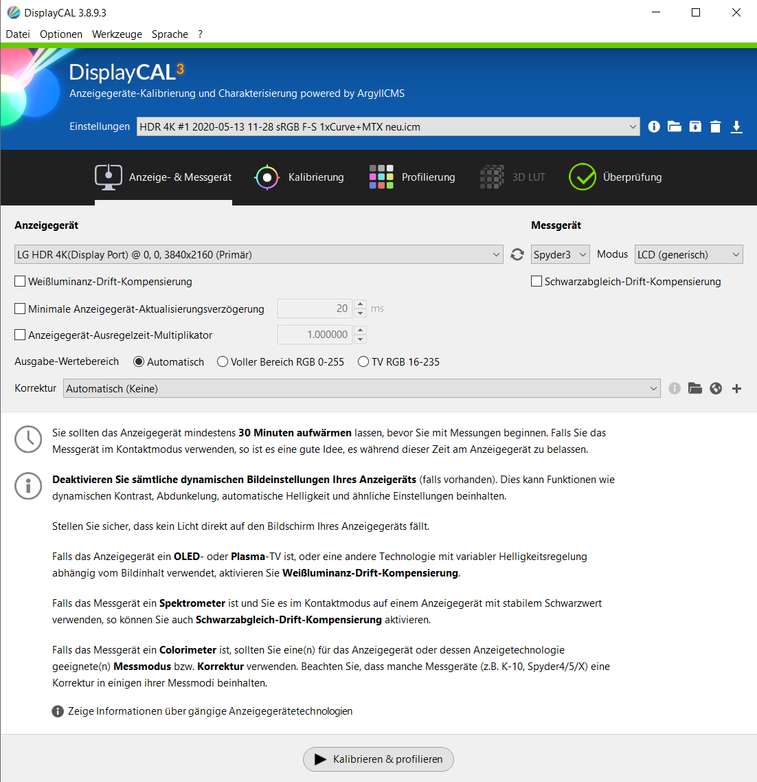 Zur Kalibrierung benutze ich meinen alten Spyder 3 Pro. Weil der Treiber nicht mehr unter Windows 10 funktioniert, habe ich die Kalibrierung nun mit Displaycal und Argyll gemacht (Ein X-Rite etc. wird mal bestellt). Das Profil wurde in die Grafikkarte eingelesen und funktioniert. Meine Bilder gedruckt sehen subjektiv betrachtet so aus wie in Lightroom. Bei der Kalibrierung haben sich auch die Farben in Windows 10 geändern, mich wundert es nur, dass das Hintergrundbild welches ich mit Lightroom bearbeitet habe, nun auf dem Desktop so übersättigt aussieht. Ich habe nun gelesen, dass Windows im Desktop- oder auch Fenstermodus keine LUTs auslesen kann und daher die Farben falsch angezeigt werden. Außerdem habe ich gelesen, dass man für Windows "Einzelne Kurve + Matrix" nehmen soll, da es dann auch Systemweit für alle Programme geht, die nicht auf LUTs zurückgreifen können. Bei mir hats aber nichts verändert. Mein Deskop ist immer noch übersättigt. Hat noch jemand eine Idee?