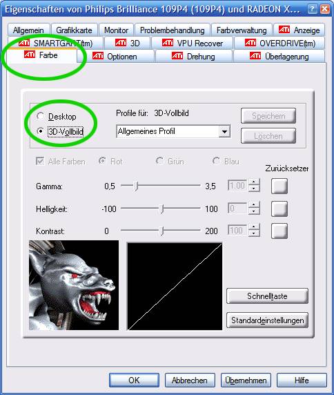 ich habe schon am monitor alle farben aufs maximum gestellt denoch ist mein bild sehr blass,leider hat ati ja keine einstellungen um die farben kräftiger zu machen,sondern gibts da nur eine option die die farben heller macht.gibt es irgent ein programm womit ich mehr farben einstellen kann`?ein zusätzliches tool was den treiber bearbeitet so in der richtung.