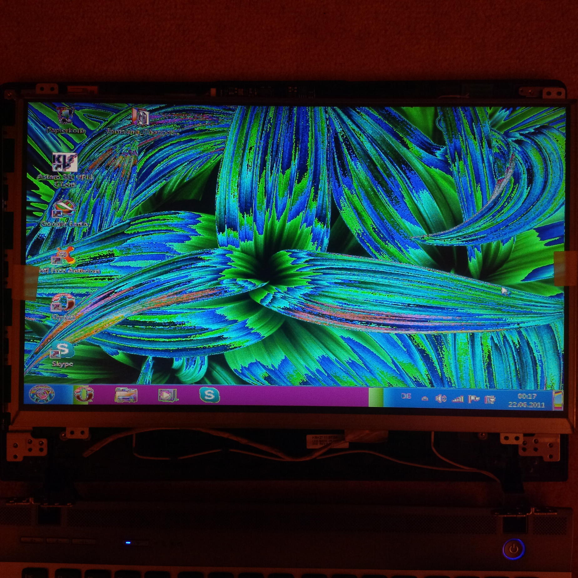 Wenn ich das neue nun anschließe, zeigt das Display sehr eigenartige Farbverläufe, jedoch völlig Andere als das vermeintlich defekte Display (Bild 2). Habe dann nochmal versucht, den Laptop via Hdmi anzuschließen, aber jetzt wird der Laptop nicht mehr erkannt.