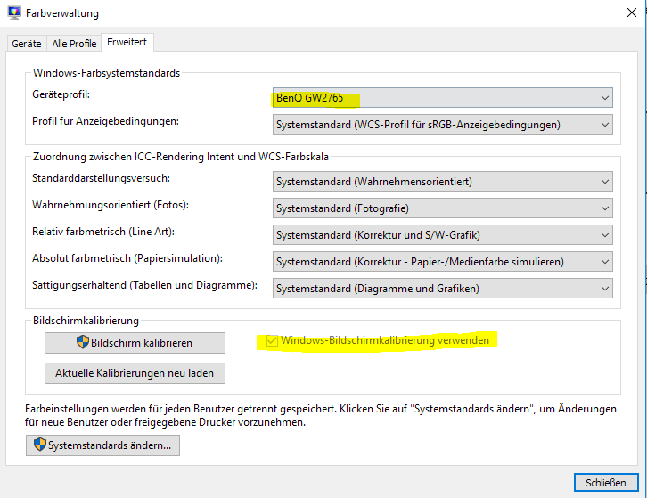 Bei mir wird das Profil in farbmanagementunfähigen Programmen wie Spielen