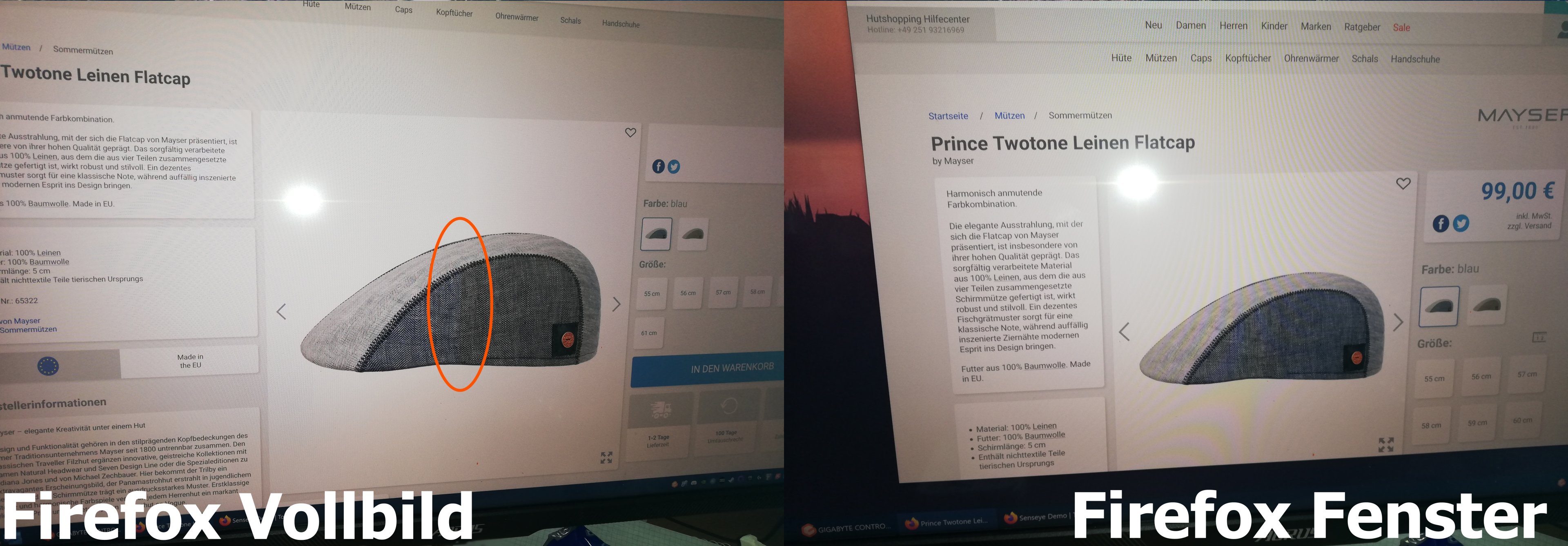 - nur bei Vollbild des Browsers (Firefox) auftritt (nicht bei Fenstermodus). Nicht unter MS Edge (Bild1).