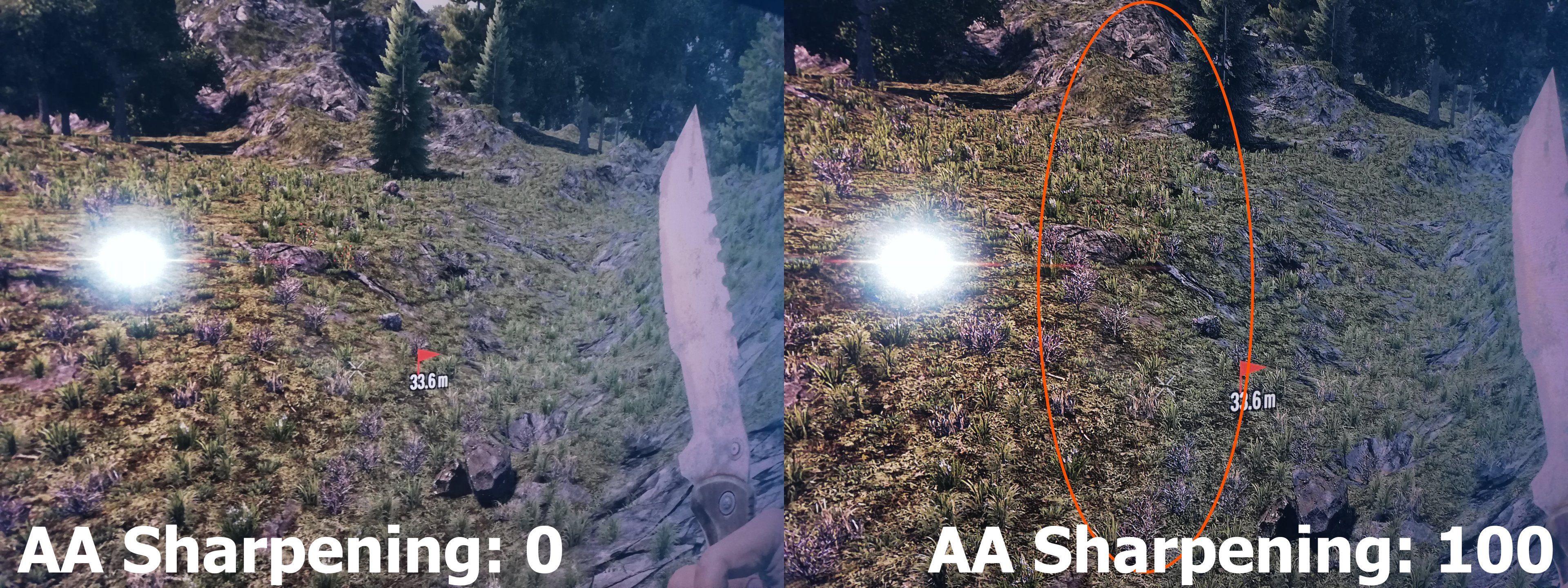 - in wenigstens einem Videospiel auftritt (7 Days to Die), besonders wenn ich dort AntiAliasing Sharpening von 0 auf 100% stelle (Bild2)