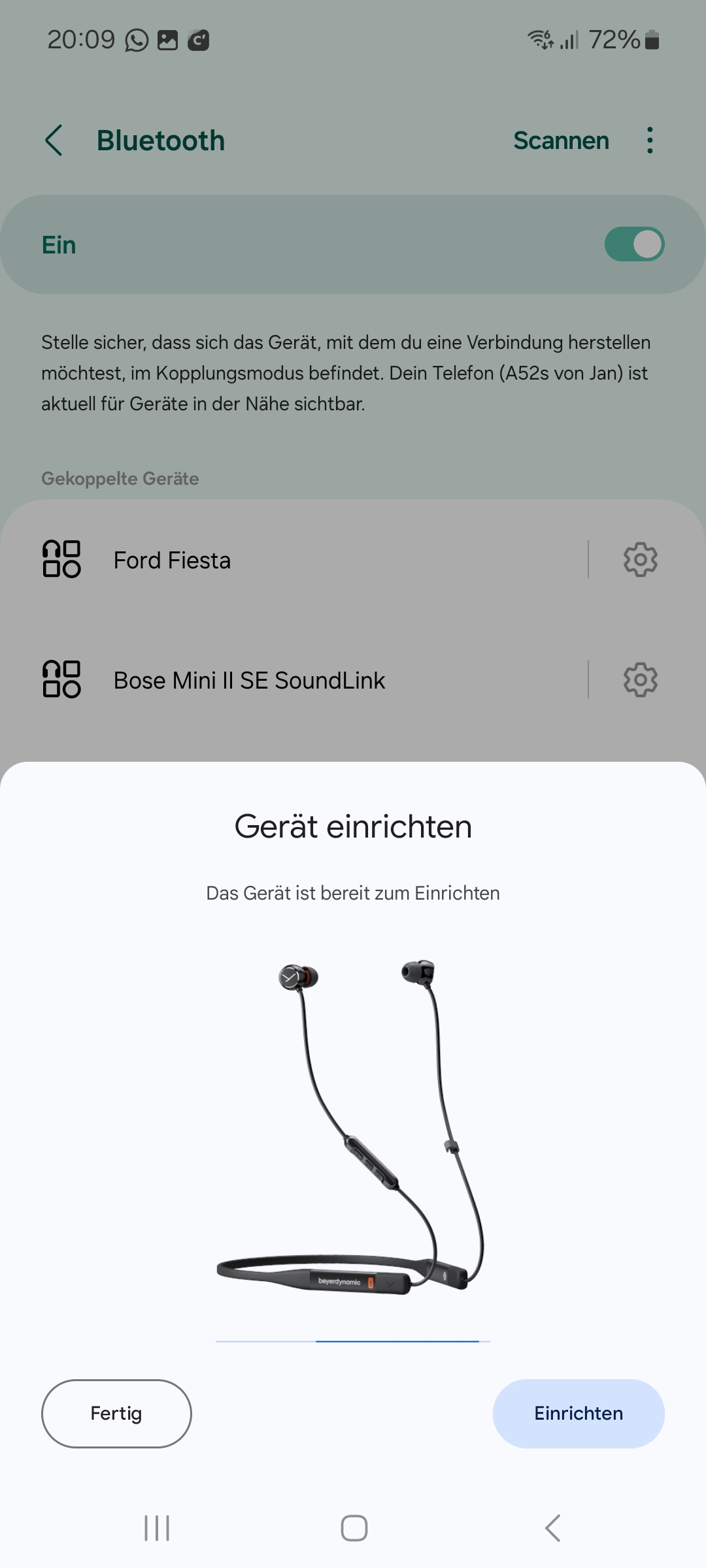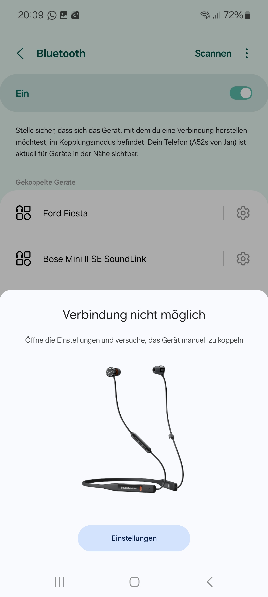 Soweit so schlecht: Bluetooth und GPS angestellt, Beyerdynamic eingeschaltet.... es kommt sogar das Dialog-/Popupfenster zum Einrichten (siehe Bilder am Anhang), jedoch ist der Einrichtungsprozess nicht abgeschlossen und es erscheint eine Fehlermeldung.