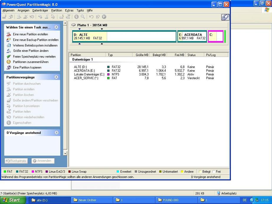 mit "Partition Magic 8" sieht man auch das ein drittel von den 28GB verbraucht ist