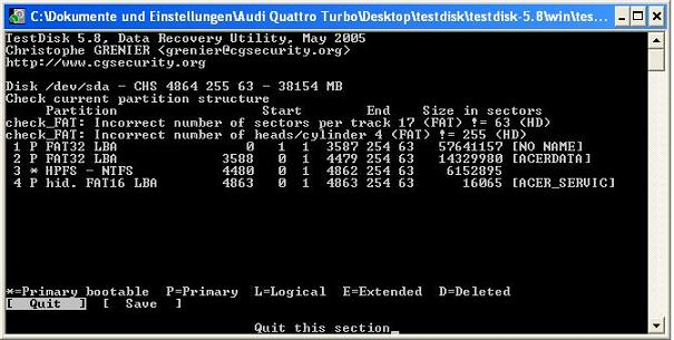 Habe gerade das Programm "Testdisk" angestartet weil ich Problem mit einer Partition habe und dieses Programm gab mir diesen Output siehe Screenshot