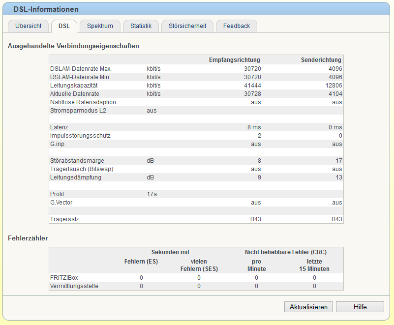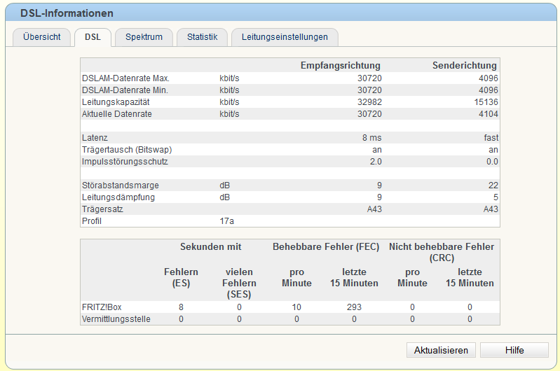 Gibt's ne Möglichkeit die FB 3370 tweaken, damit die bei grenzwerten Einstellungen synchronisiert? Habe jetzt siet 5 Monaten VDSL2. Anfangs nur 25mbit, nach paar Wochen 27mbit und schließlich 30mbit. Das jetzt bis heute Abend komplett störfrei lief (abgesehen von ES/SES Fehlern). Heute musste ich aber die Bandbreite durch die Hotline heruntersetzen auf 20/1 (vorerst, die automatische Optimierung läuft gerade und taste so lange hoch bis es unstabil wird).