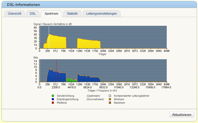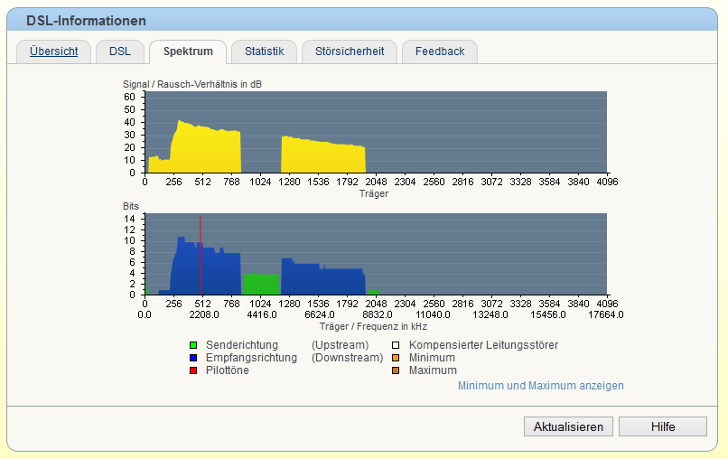 Auffallend ist die Leitungsdampfüng vom Upload (5-13db), der vom Download ist ja komplett gleich geblieben, aber hatte 2-3mbits mehr. Mich hat es sowieso gewundert wieso die Kapazität niedriger wurde, da ich eigentlich die letzten Monaten beobachten konnte, dass sie immer höher wurde.