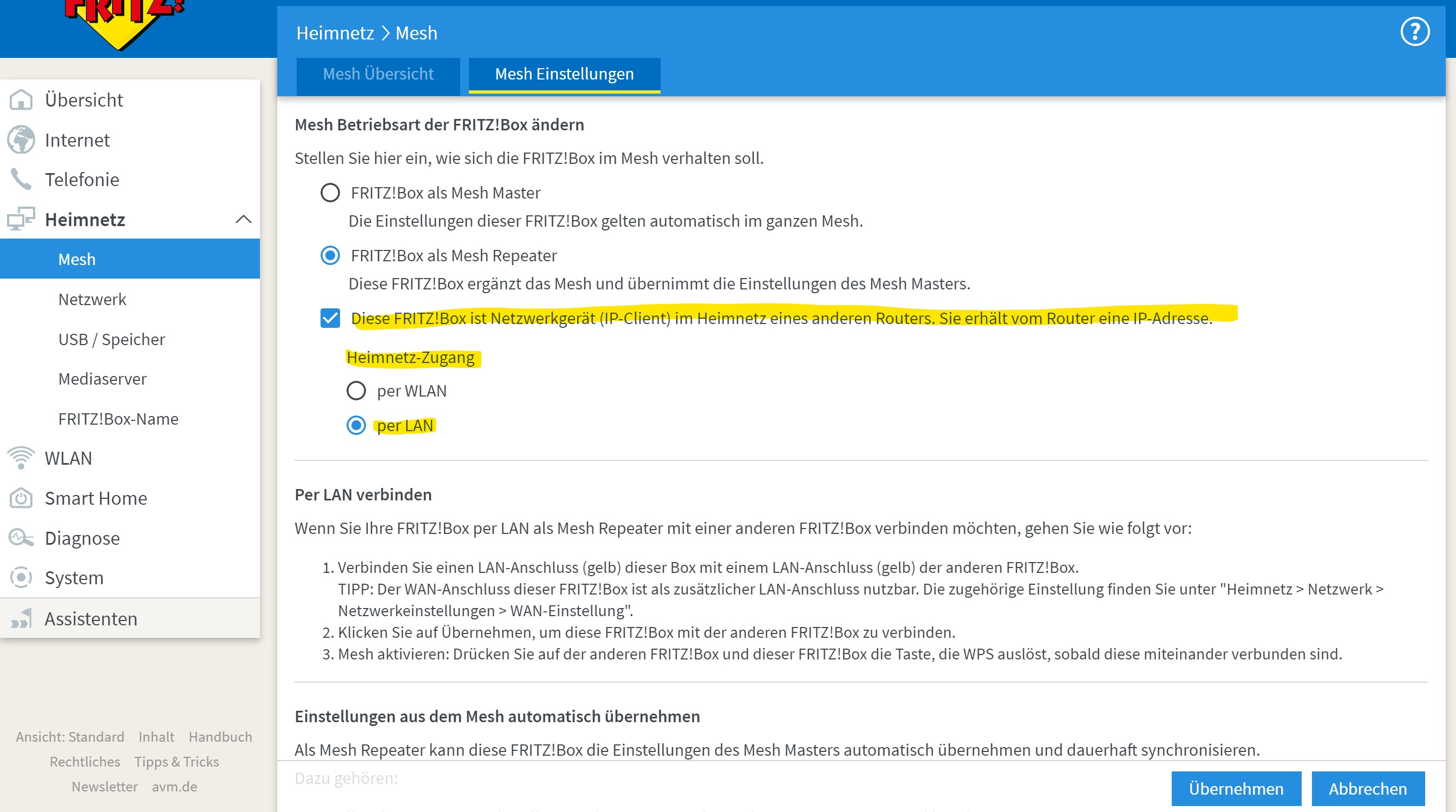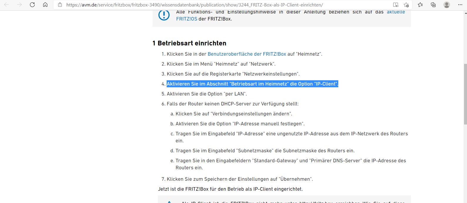 möchte meine alte FB 3490 als Repeater hinter die o2 Home Box 6641 hängen. Habe das LAN Kabel an Eingang --DSL-- der FB 3490, PC an LAN 1. Zugriff auf die FB habe ich, aber die Einstellmöglichkeiten erschlagen einem. Habe schon verschiedenes versucht, Prob bleibt, das ich kein DSL am PC habe.
