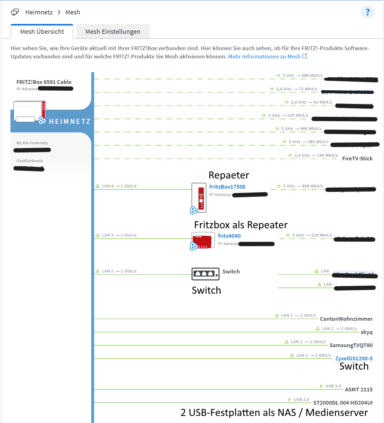 Derzeit habe ich eine TP WR1043ND im Wohnzimmer als 2. Fritzbox mittels LAN mit der FB verbunden. Der TP hat ein separates WLAN + TV & Receiver hängen per LAN daran.