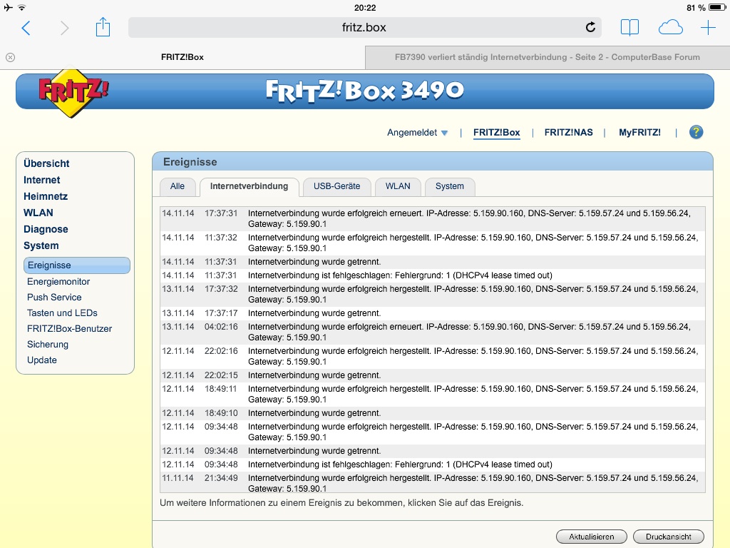 lies die logs aus um zu wissen, wo der fehler liegt.. wahrscheinlich steht sowas wie ein dns-server fehler....