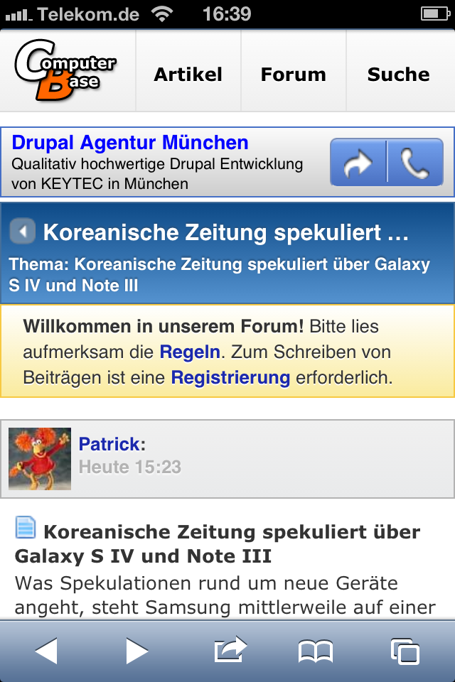 Danke für die Anregungen. Den Editor haben wir ja bereits etwas verbessert, vielleicht lässt sich bei der Forum- und Themenliste noch was rausholen.