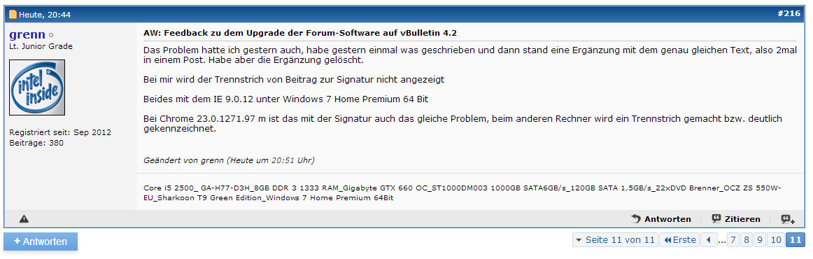 numi schrieb:Das ist eigentlich kein richtiger Trennstrich sondern die Textfelder sind sozusagen weiße Kästen auf grauem Grund und es ist eine kleine Lücke zwischen dem Kasten mit dem Beitrag und dem mit der Tastatur. Es kann gut sein, dass du den kleinen Unterschied im Grauton auf einem PC nicht siehst, da der Monitor das nicht so schön darstellen kann. Ich hatte auch mal einen Bildschirm der Probleme mit hellen Grautönen hatte.