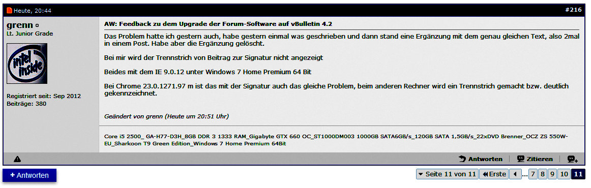 Ich habe den Kontrast beim Monitor jetzt von 95 auf 65 gesetzt, jetzt kann man es wenigstens leicht erkennen, hatte das auch nicht nur hier bei Computerbase sondern mir ist das auch gestern bei dem neuen Ebay Design aufgefallen, wo die Suchleiste nicht zusehen war. Aber jetzt nachdem ich den Kontrast runter gestellt habe geht das schon.