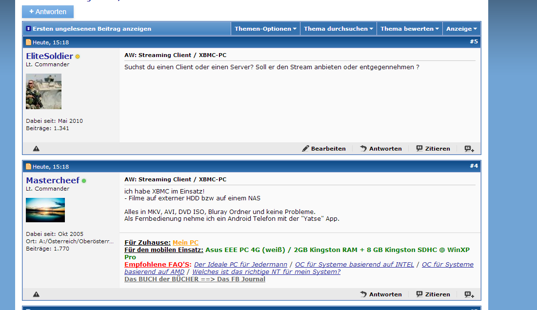 Ich habe die Checkbox entfernt.::1 schrieb:kann man dieses nervige "[x] Signatur anzeigen" bei 'direkt antworten' nicht ausblenden? nervt dass man immer 2x tab drücken muss, um den beitrag abzuschicken... ist in jedem anderen forum auch so... des weiteren wüsste ich nicht, warum man immer die option "Signatur anzeigen" zur verfügung haben müsste... imho entscheidet man sich einmal dafür oder dagegen - und nicht bei jedem beitrag...