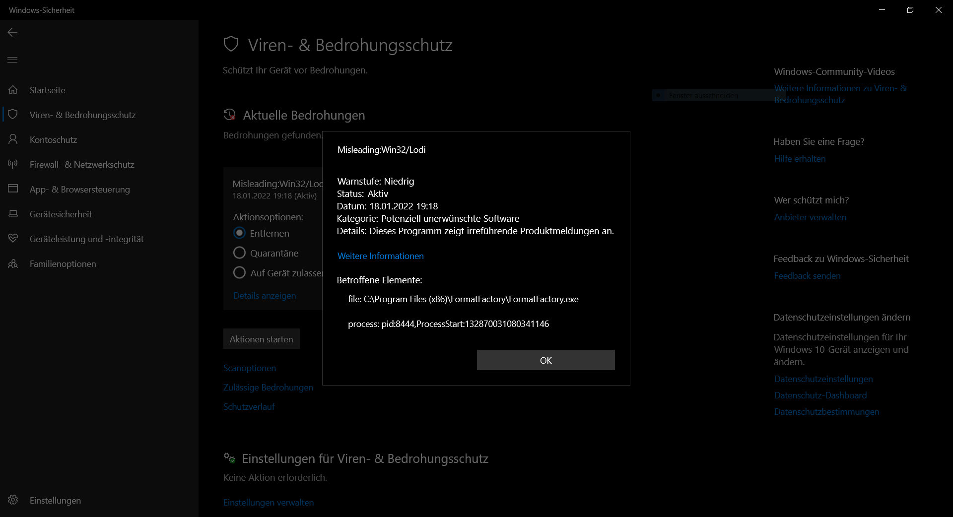 Bei mir hat er die .exe zum ausfuehren des Programms, zusaetzlich als Verdaechtig gemeldet. Also jene, die sich aus der Installation ergibt.