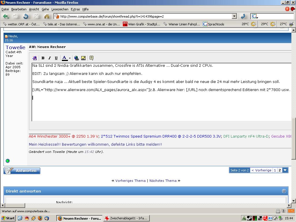 Also ich glaub ich hab einen Bug entdeckt, weiß aber jetzt nicht ob das nur bei mir so ist. Wenn man bei einer Antowort einen Link mit einer Beschreibung einfügen will (z.b. Das XY findest du hier) Dann kann man die beschreibung nicht mit einfügen, sondern es wird einfach der Link an sich eingefügt. Wisst ihr was ich meine?