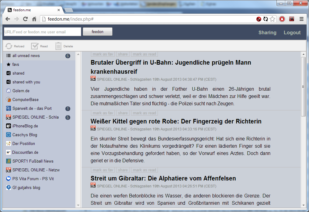 Wer will kann sich auf www.feedon.me einen Account anlegen.