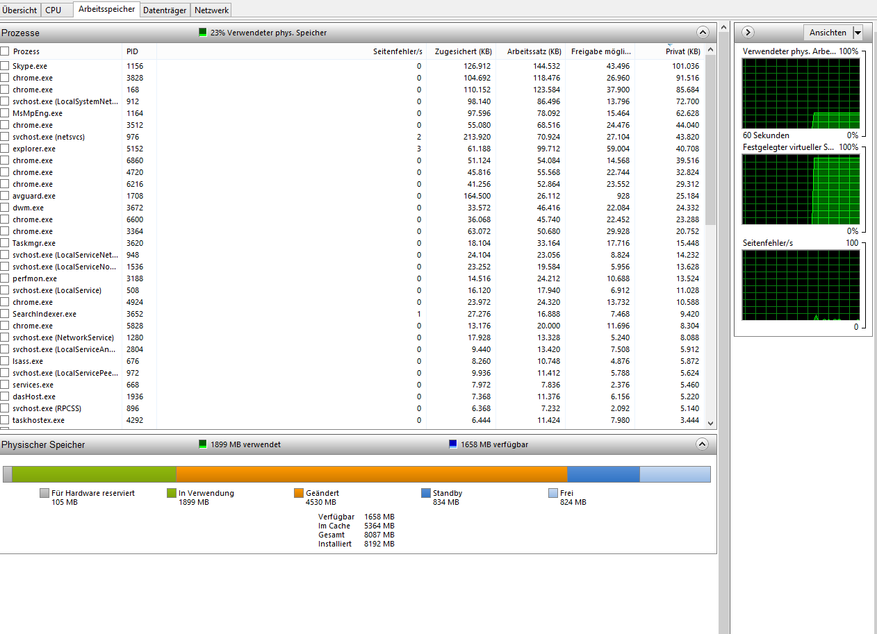 Ich habe mir vor ca. 2 Monaten einen neuen PC gekauft und hatte bis vor 5 Tagen auch keine Problem damit. Doch seit 5 Tagen erhalte ich oft einen Fehlermeldung dass ich zu wenig Arbeitsspeicher habe und es stürze auch oft Programme und Spiele ab. Darauf hin habe ich mir im Taskmager die Prozesse angeschaut und gesehen, dass diese Zusammen auf 500Mb kommen mir jedoch angezeigt wird, dass 77% des Arbeitsspeichers ausgelastet sind. Das ist ziemlich merkwürdig, da ich 8gb Ram habe.
