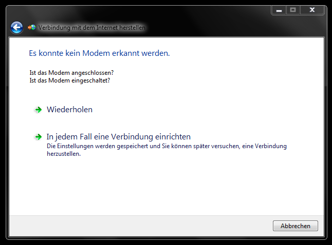 Ich habe das Modem schon vom Netz genommen und wieder angeschlossen. Ich verwende Windows 7.