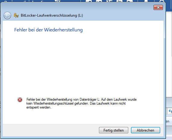wie schaffe ich es die festplatte wieder zu ensperren er kannt wird sie aber sie lässt sich nicht öffnen da kommt immer die meldung fehler bei der wiederherstellung .