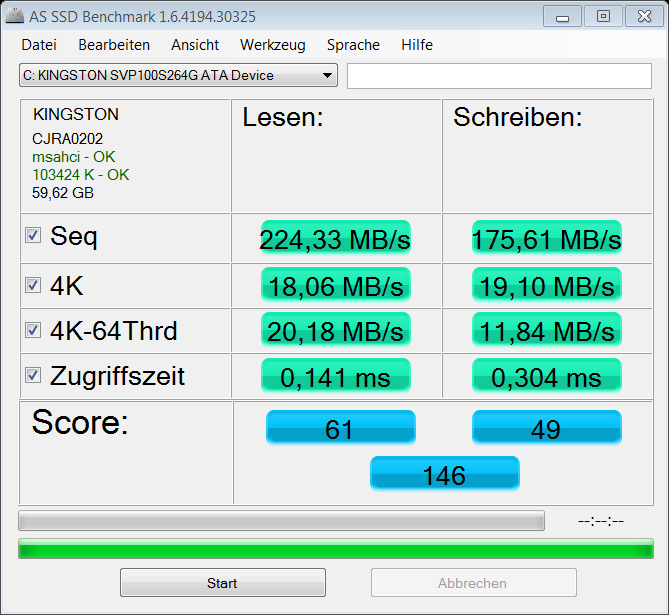 Seit dem ich mir gestern eine Kingston SSD Now V+ 100 64GB als Systemfestplatte eingebaut habe funktioniert die hauseigene Leistungsbewertung von Windows 7 Home Premium 64 bit nicht mehr.