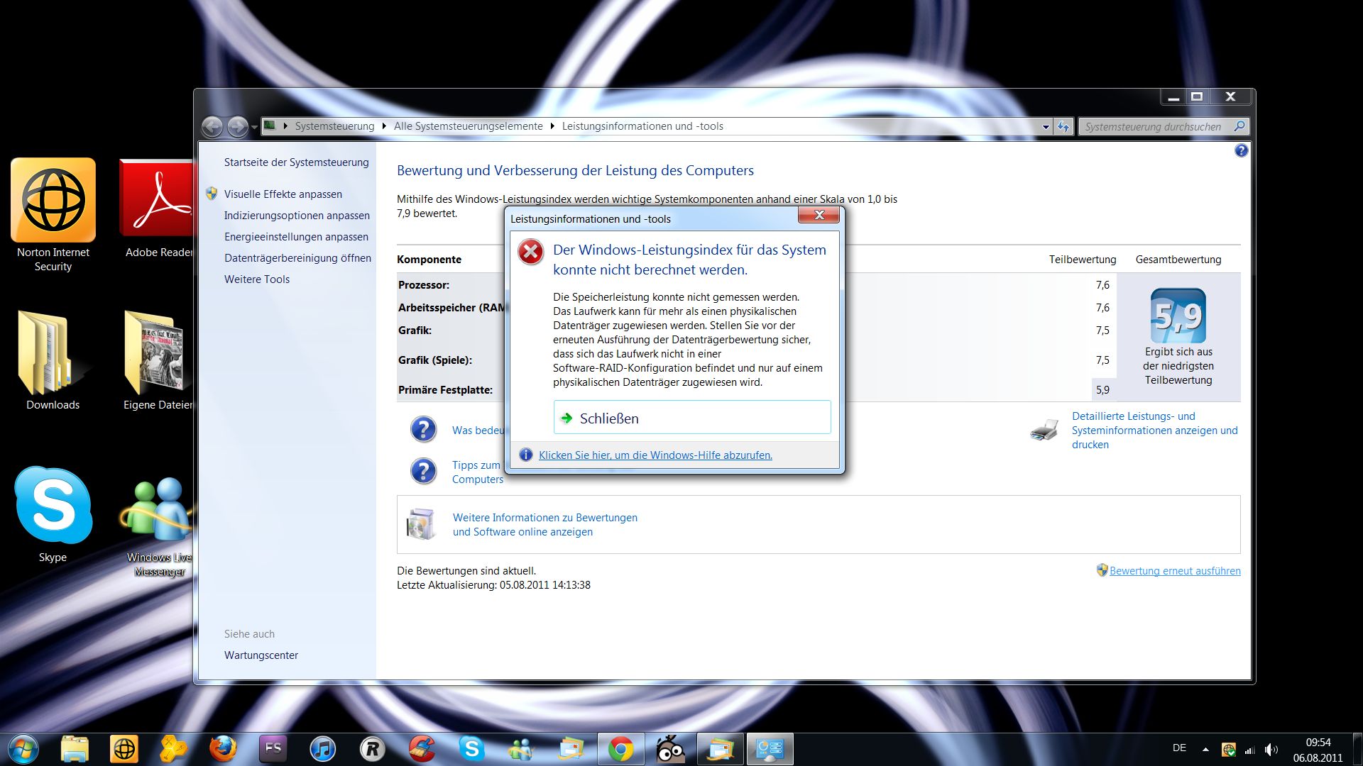 Der Windows Leistungsindex für das System konnte nicht berechnet werden.