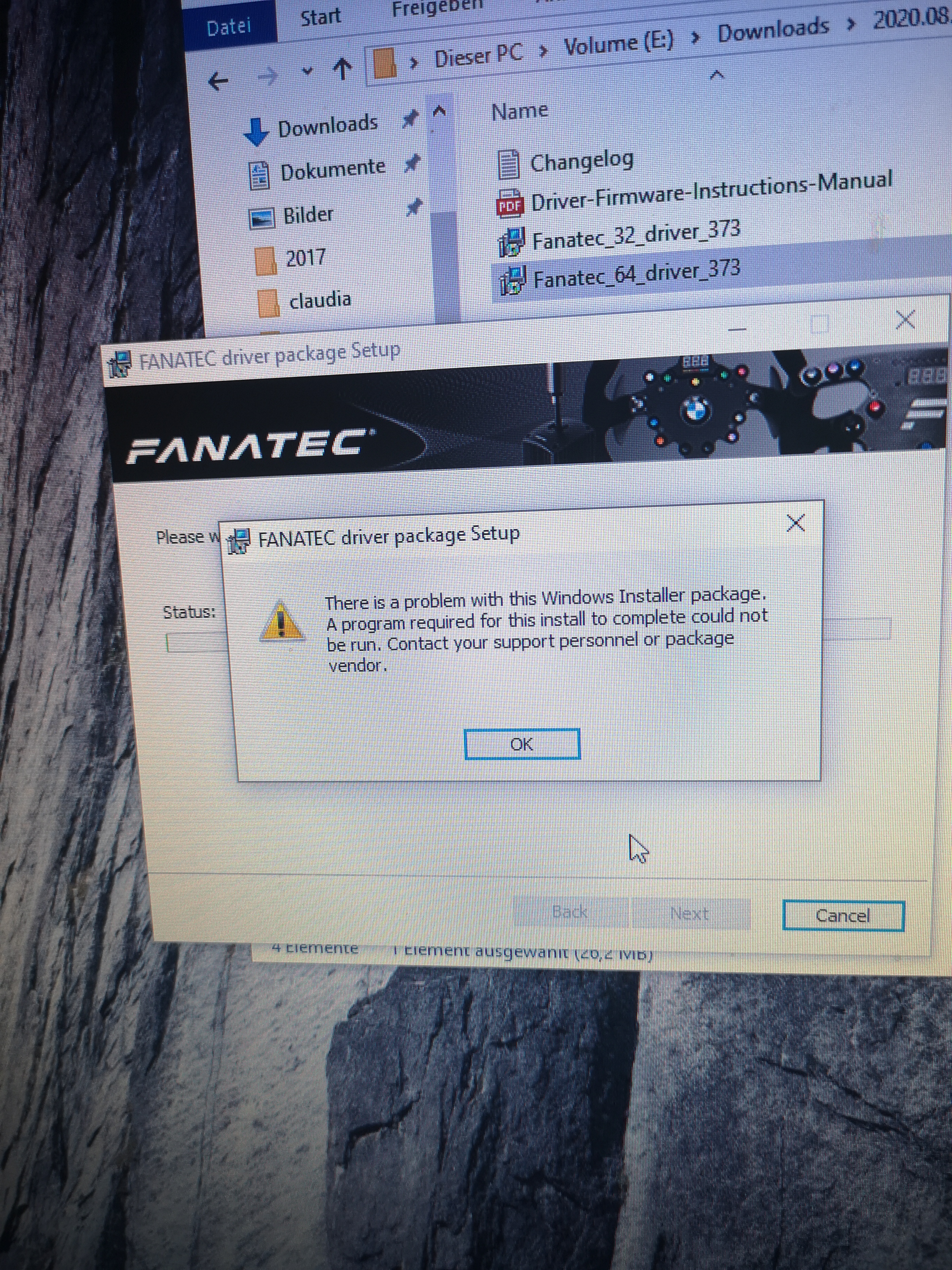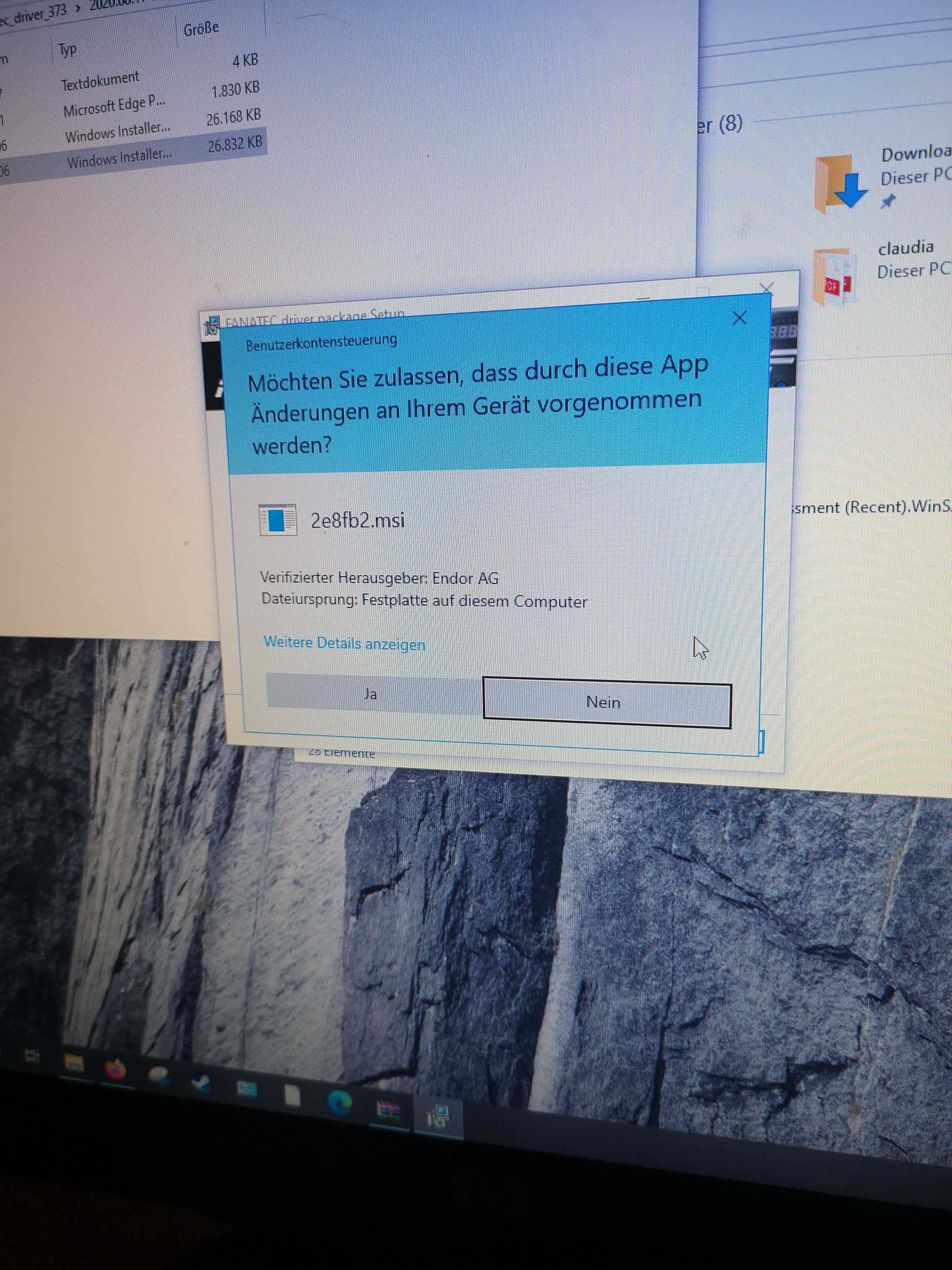 Hallo ich habe ein problem beim installieren von einem Gerätetreiber von Fanatec. Wenn ich die Installation ausführe fragt er mich ab einem bestimmten Punkt ob ich zulassen möchte das Änderungen am Gerät vorgenommen werden.