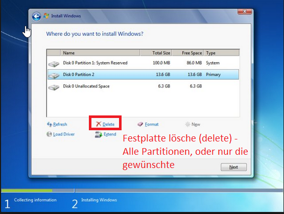1. Ich kann das nicht löschen und installieren und 2. Ist das ja keine partition sondern die komplette ssd.