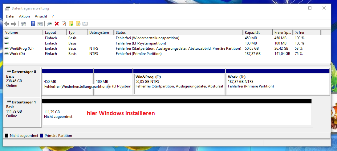 BTW: Die SSD heißt dort: Nicht zu gewiesener Speicherplatz auf.