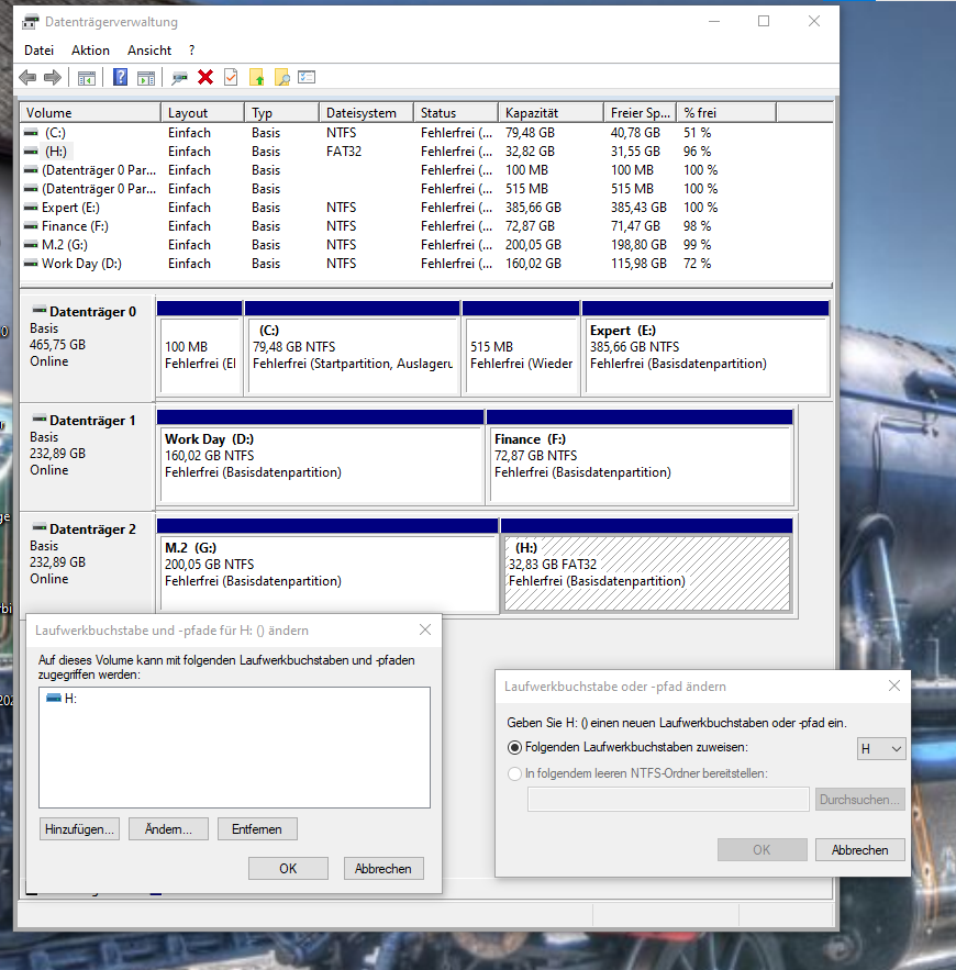 Wenn ich nun versuche unter der Datenträgerverwaltung den Laufwerksbuchstaben (zu D) zu ändern kommt die Fehlermeldung: Falscher Parameter (im Fenster: Verwaltung virtueller Datenträger).