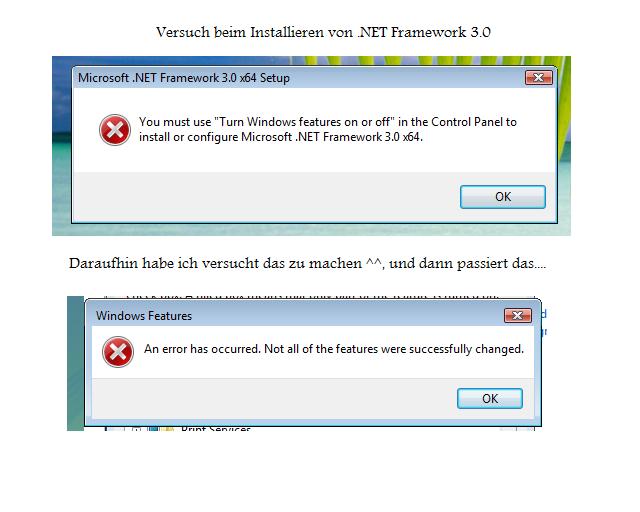 Also, ich installier jetzt mal .NET Framework 3.0 drüber.