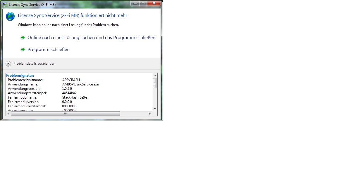 Hallo seit gestern kommt immer der Fehler AMBSPISyncService.exe wenn Windows startet.