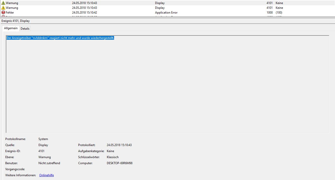 Der Anzeigetreiber "nvlddmkm" reagiert nicht mehr und wurde wiederhergestellt