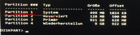 Ich habe dann versucht mit Diskpart die Partitionen von der neuen SSD zu entfernen. Mit Diskmngr,exe konnte man die EFI-Partition usw. nicht einfach entfernen und da habe ich es mit DISKPART gemacht und eine Anleitung befolgt die ich unten verlinkt habe unter 5) .