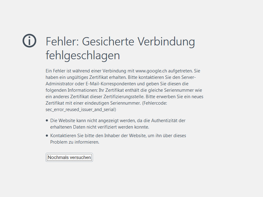 Fehler: Gesicherte Verbindung fehlgeschlagen.