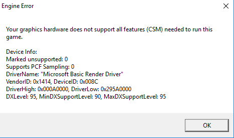 erschein eine Fehlermeldung "your graphics hardware does not support all features (csm) needed to run this game"